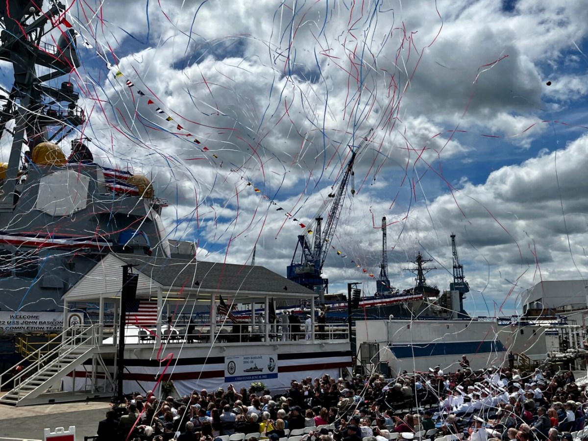 Christening BIW’s latest warship, Collins and Navy leaders call for more