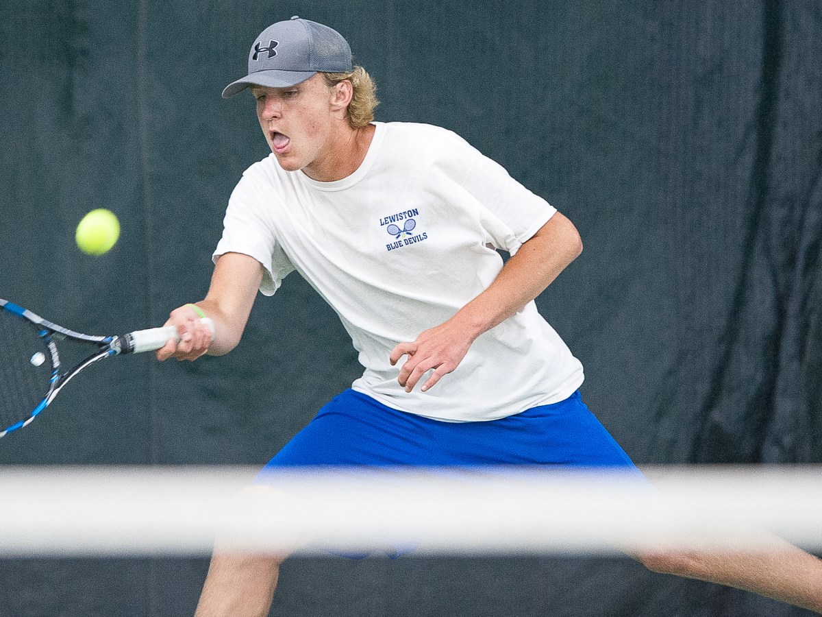 Lewiton’s No. 1 singles player Cole Ouellette returns a backhand against Brunswick’s Dasol Kim during Tuesday’s Class A North championship match in Brunswick. Lewiston boys’ tennis coach Tom LeBlond knows his team will have to play its very best from first singles all the way to second doubles Saturday when the Blue Devils go up […]