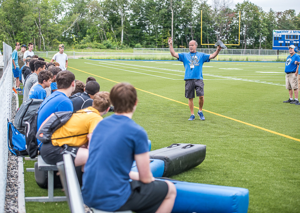 Head coach Bruce Nicholas talks to the Lewiston football team Monday morning at the start of the first day of football practice on a brand new football field. (Andree Kehn/Sun Journal) Head coach Bruce Nicholas, far right, leads the Lewiston football team in the very first drill on the new football field on Monday morning. […]