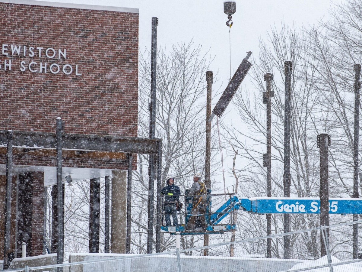 Ironworkers erect the framework for the new wing at Lewiston High School Wednesday morning.