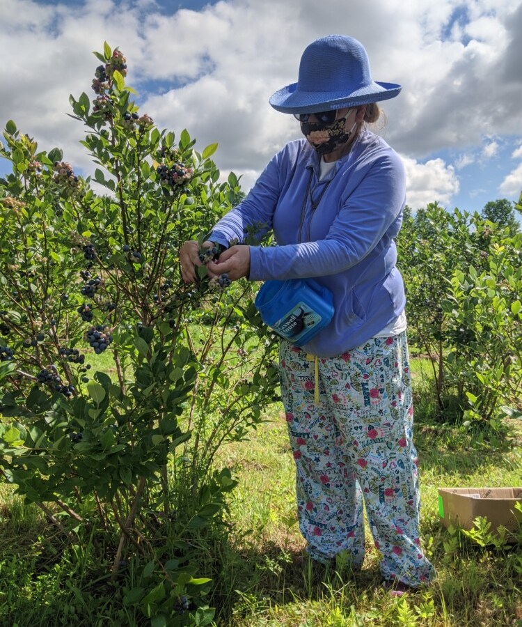 “It relaxes my mind, especially right now. It’s an activity to take your mind off of everything,” Diane Oakes said about harvesting blueberries.