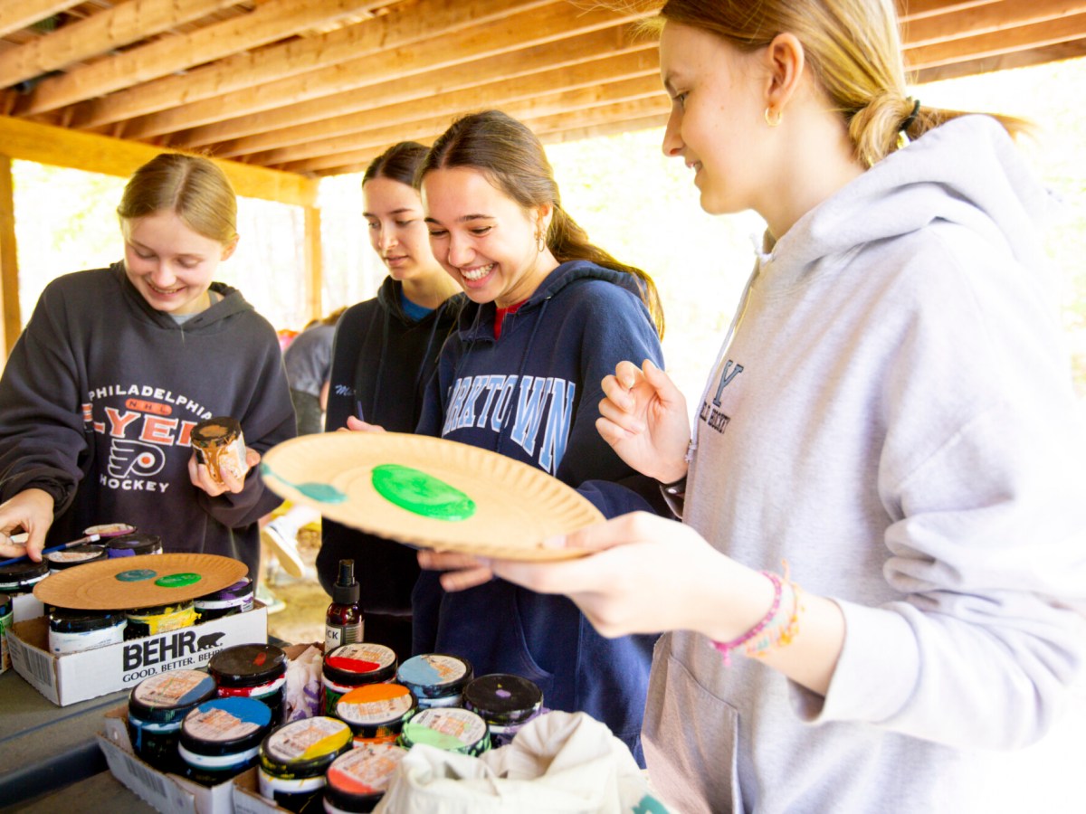 Students in the Pay It Forward program paint benches and tables donated by AARP and assembled by Congo Craftsmen.