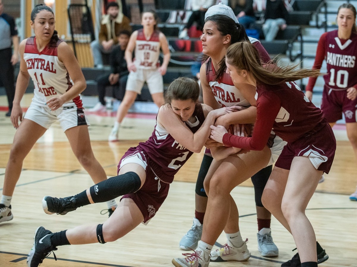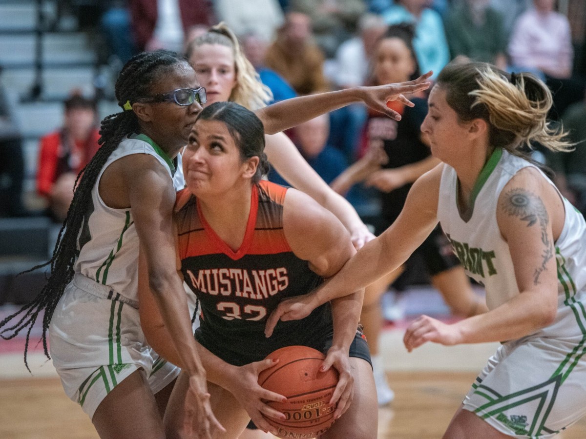 Destiny Mora Lopez scores game-high 20 points and teammate Luna Love hits five of her nine 3-point attempts for 15 points in the Mustangs’ 97-23 victory.