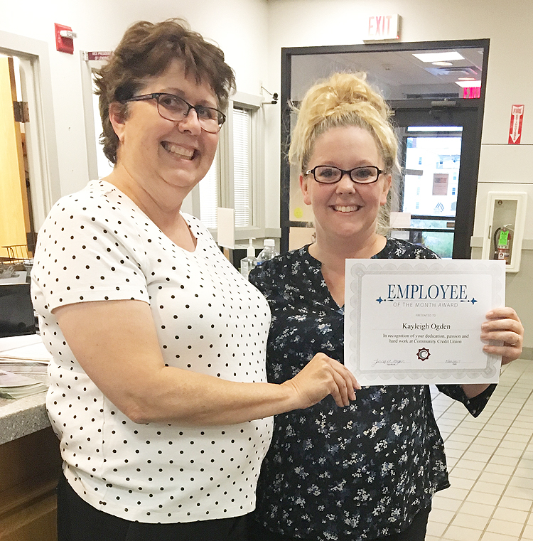 Jo-ann Jackson, left, vice president of financial operations at Community Credit Union, presents Kayleigh Ogden, payment services coordinator, with the July Employee of the Month Award. Ogden oversees the Visa department and works to prevent fraudulent activity. She has been in the position for 13 months and works in the Lewiston branch. The award, decided […]