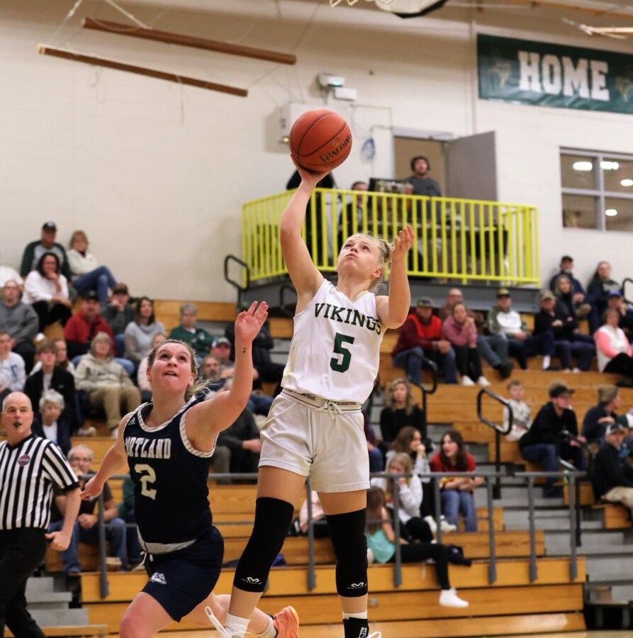 Ali Portas scores go-ahead bucket for Patriots; Spruce Mountain girls rout Madison; Oxford Hills boys roll past Edward Little; Dirigo wrestling overcomes forfeits to defeat Mountain Valley; Swimming, Alpine and Nordic ski results.