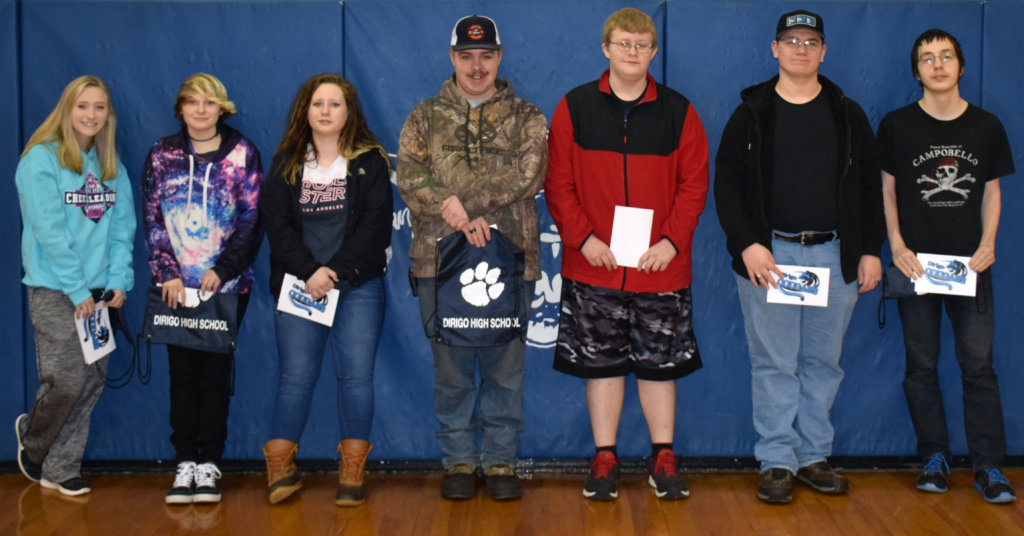 These Dirigo High School students were rewarded for their hard work and good attitudes with classroom awards for January. In the photo from left are Carly Welch, English 12; Gabby Warner, Science; Haylee Wing, Alternative Education; Franklyn MacDonald, History; Luke McLeod, World Language Seminar, Spanish; Wayne Sanford, French II; Ian Salvati, English 9: absent, Alexa […]