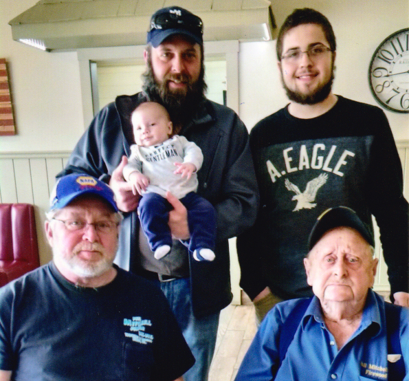 The Mitchell family gathered recently in Minot to celebrate the birth of a fifth generation, Lucas Mitchell. Seated, from left, are Lucas’ great-grandfather Phil Mitchell Jr. and great-great-grandfather Phil Mitchell Sr.; and, standing, are grandfather Phil Mitchell III holding Lucas and father Brandon Mitchell.