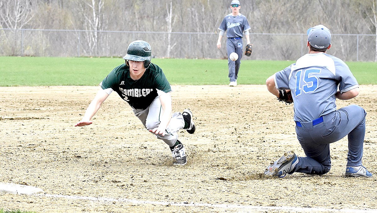 Winthrop High School’s Greg Fay dives into third base as Mountain Valley’s Garrett Garbarini waits for the throw from the outfield during their game in Winthrop on Saturday. WINTHROP — The advantage of playing at home in baseball is that the home team always gets a chance to answer. When Winthrop wasted a pair of […]