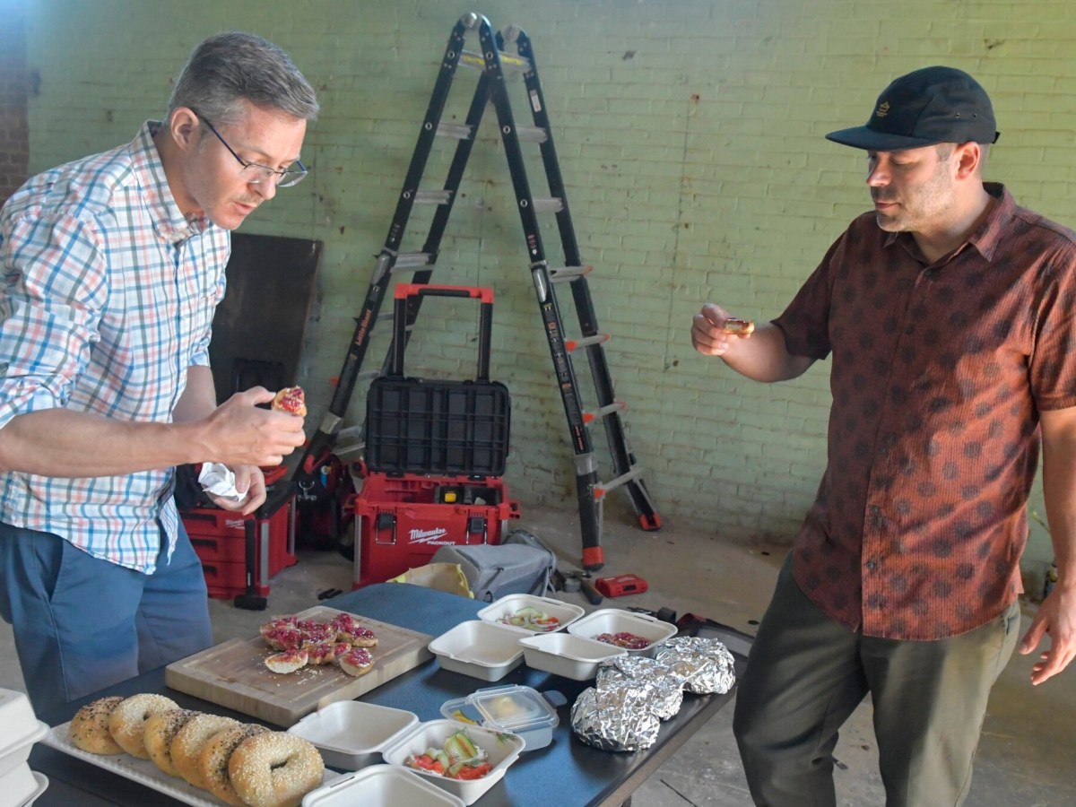 Sand Hill Bagel Co. developers hope the shop, which is slated to open next spring in the last remaining building of the former mill, will become one with the neighborhood and city park.
