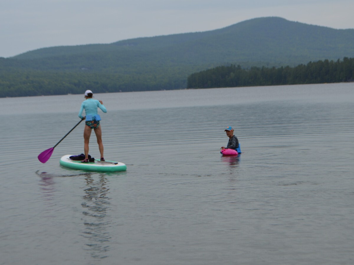 Sisters Rose Prest-Morrison of Limerick and Merrily Welch of Temple used a pump to inflate a paddleboard Tuesday.