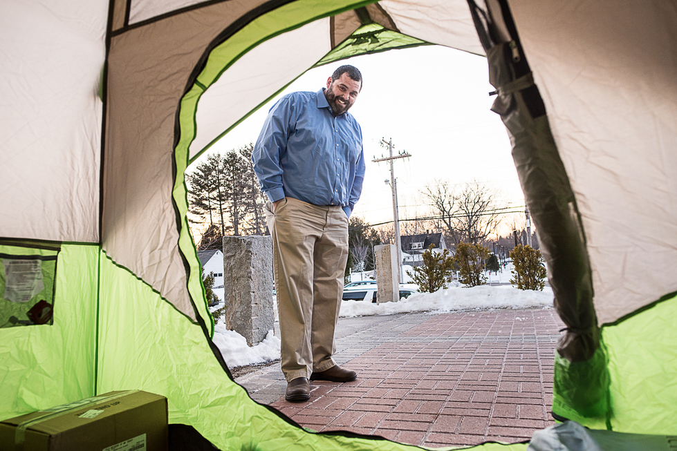 Lewiston Middle School Principal Jake Langlais peers into the small tent he was spending Thursday night in as part of a reading challenge for students. The tent was set up on the school’s front steps. Lewiston Middle School Principal Jake Langlais says goodnight to his family, Karter, 6, Madison, 9, and his wife, Allison, on […]