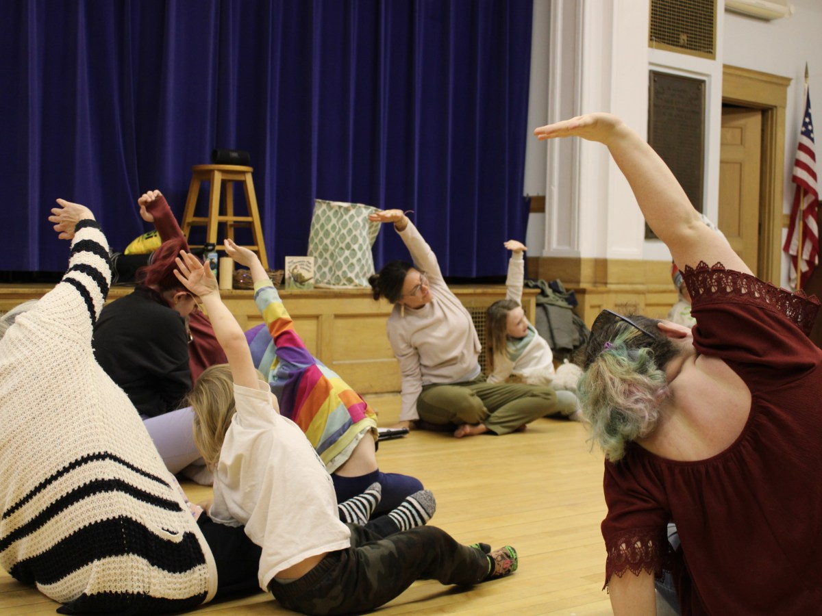 Jennifer Stone leads kids and families in self-regulating dinosaur yoga.