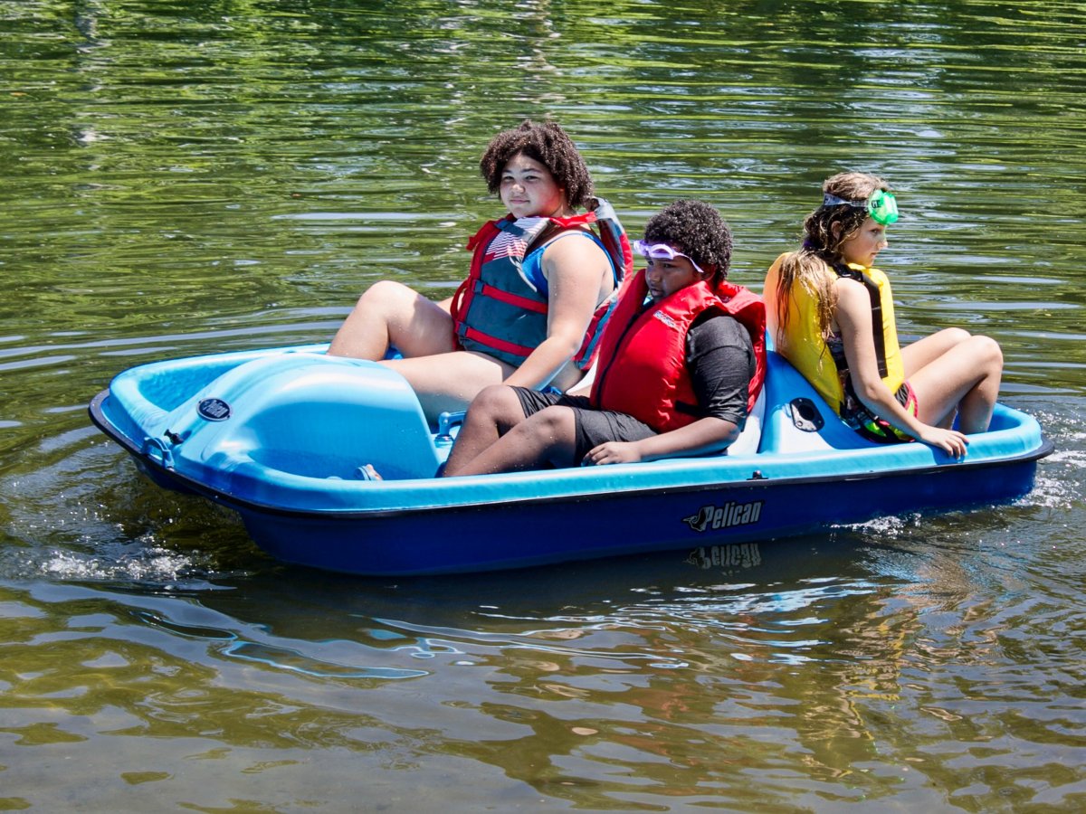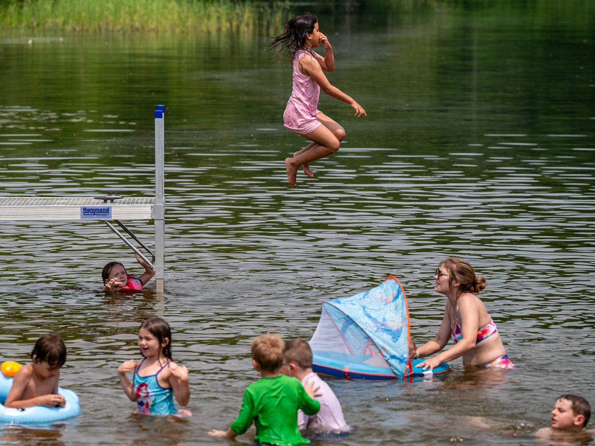 People cool off at Lake Grove Park swimming hole Thursday before the rain set in.