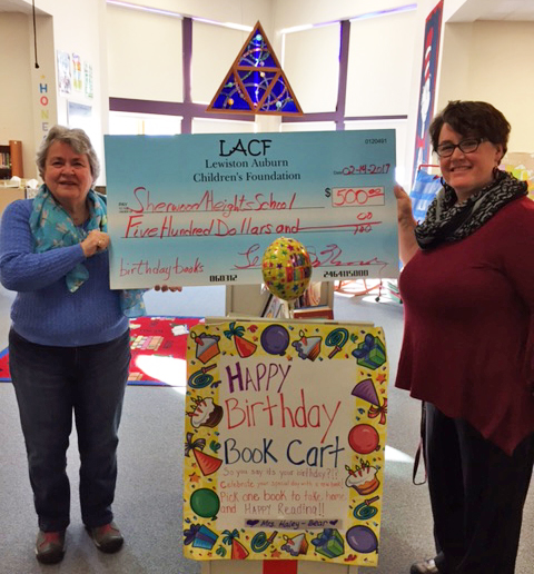 Lewiston Auburn Children Foundation awards Sherwood Heights grant for Happy Birthday Book Cart program