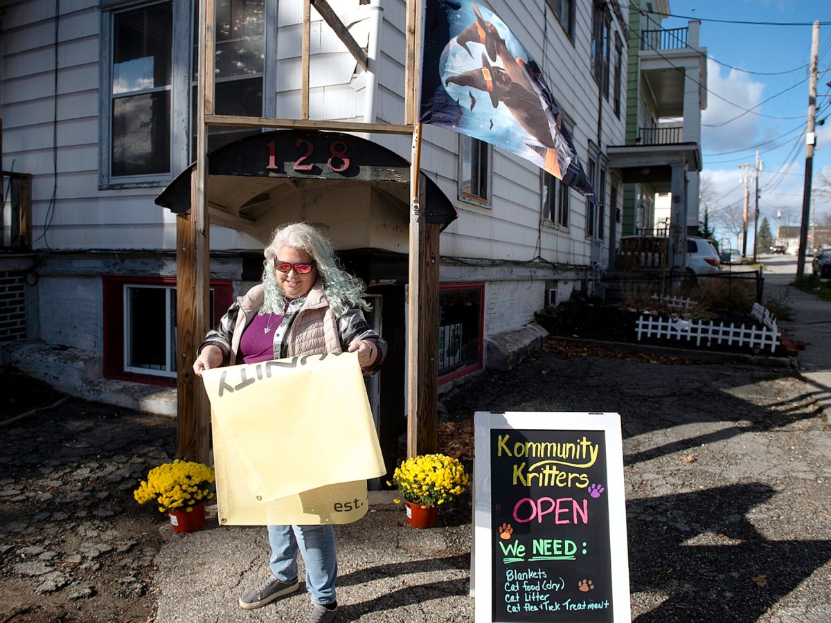 Sandy Graul of Sabattus gives potential pets hands-on help