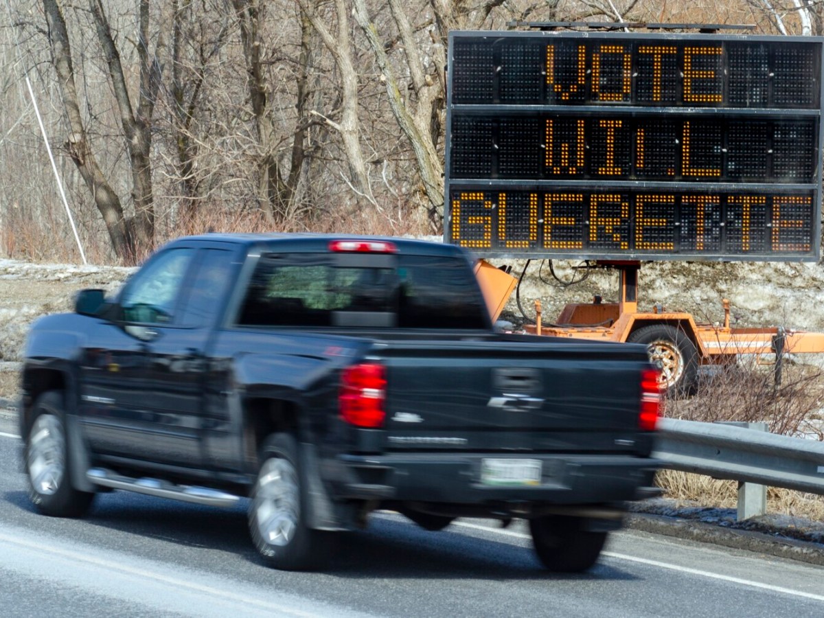 At issue are four electronic signs posted on behalf of William Guerrette, the Republican candidate in the race, and whether they comply with state election laws.