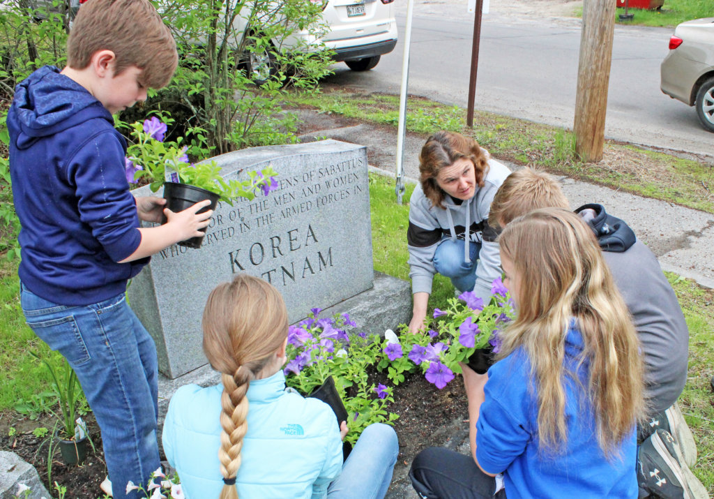 Peru teen plants flowers for veterans at cemeteries in 18 Western Maine communities