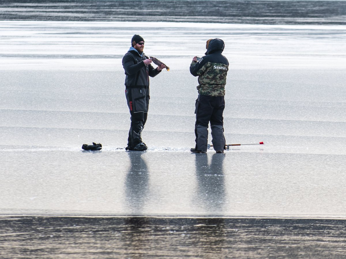 Friends ice fish Friday morning on Middle Range Pond in Poland, catching and releasing rainbow and brook trout.