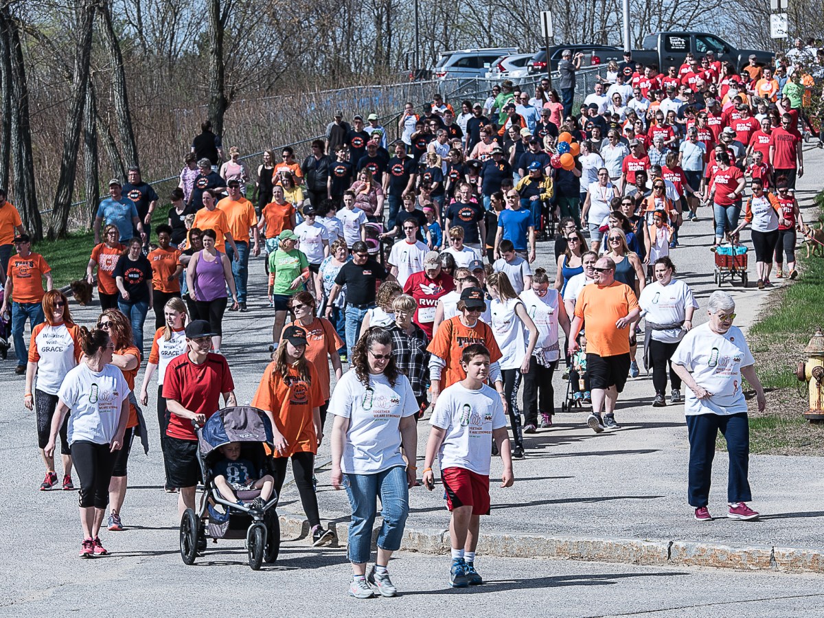 Hundreds of walkers leave Lewiston High School on Saturday morning to start the Androscoggin County Multiple Sclerosis Walk. The event is part of a national fundraiser that supports research to end the disease worldwide.