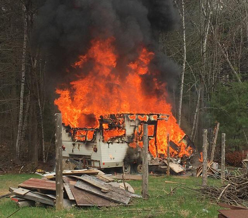 Fire razes camper on Sabbathday Road in New Gloucester