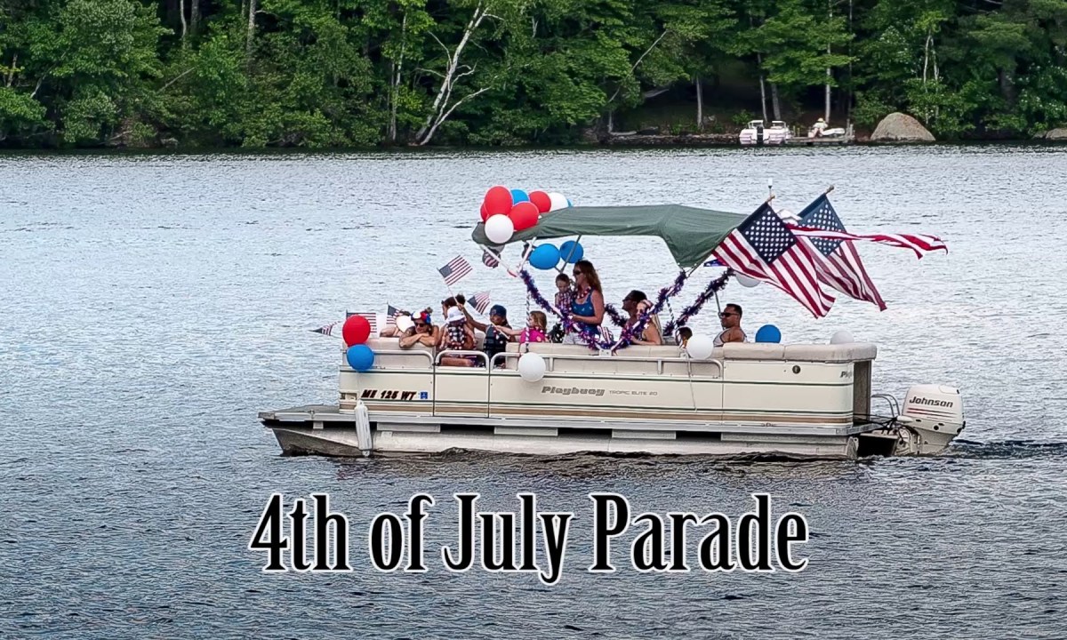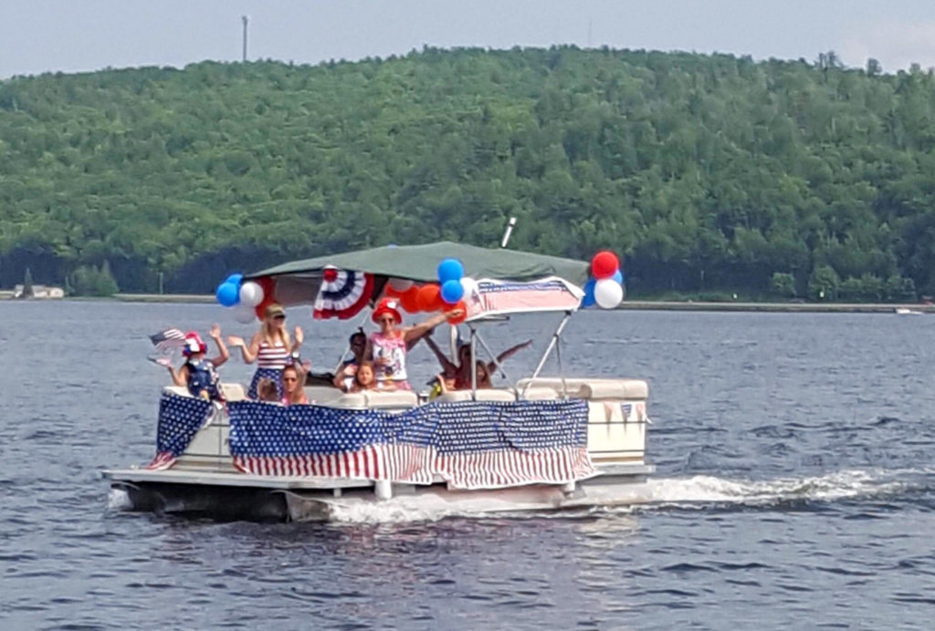 One of more than 30 boats parades along Norway Lake on July 4. Over 100 people participated in the second annual procession that included an 8-foot-tall Statue of Liberty, a full-body eagle costume, a Hawaiian luau boat and a patriotic moose.