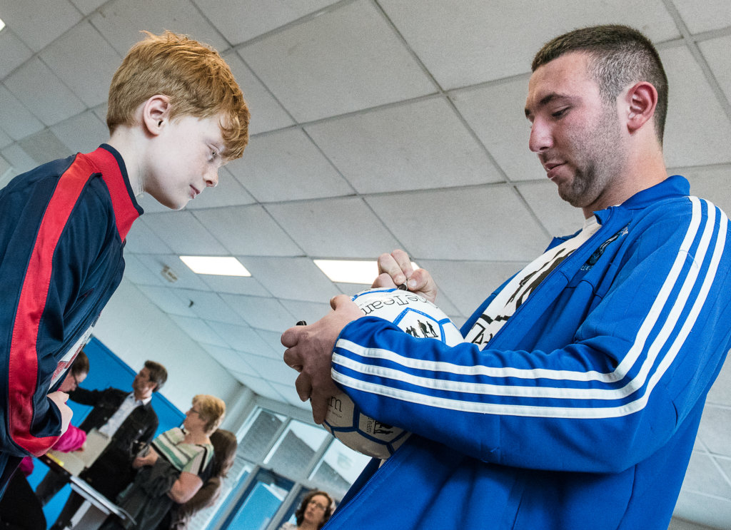Austin Wing, the starting goalie for the 2015 state champion soccer team from Lewiston High School, signs a soccer ball for Jack Verville, 9, of Falmouth at the LHS gym lobby Thursday night before the premiere of a movie documenting the team. (Russ Dillingham/Sun Journal) LEWISTON — Like a fine wine, the film “One Team: […]