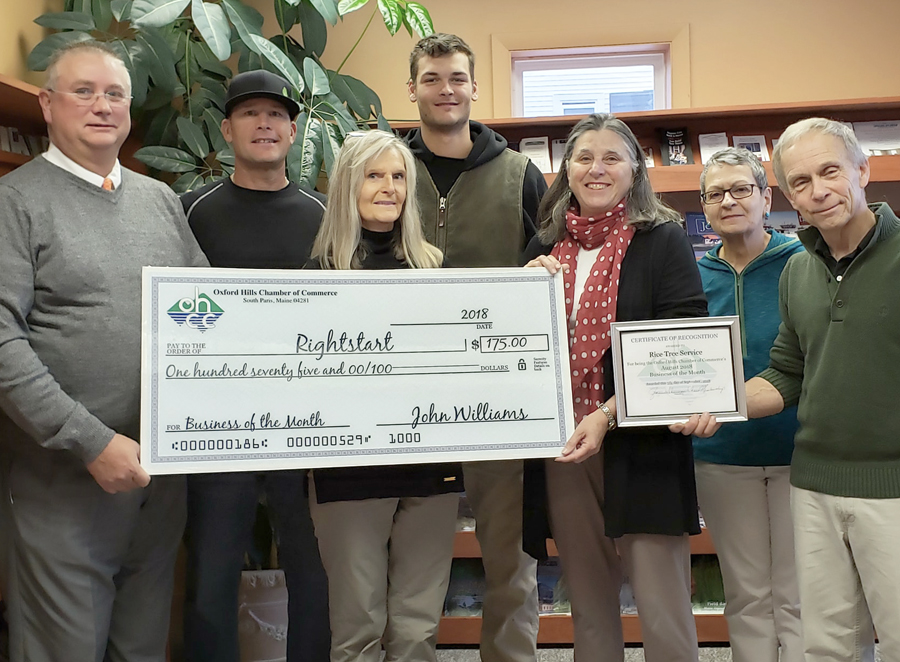 SOUTH PARIS — The Oxford Hills Chamber of Commerce’s membership committee recently made a charitable donation to Rightstart’s Christmas for Kids and Teens program. The donation is based on at least 20 percent of the net proceeds raised during the Festival of Trees event and amounts to $175.