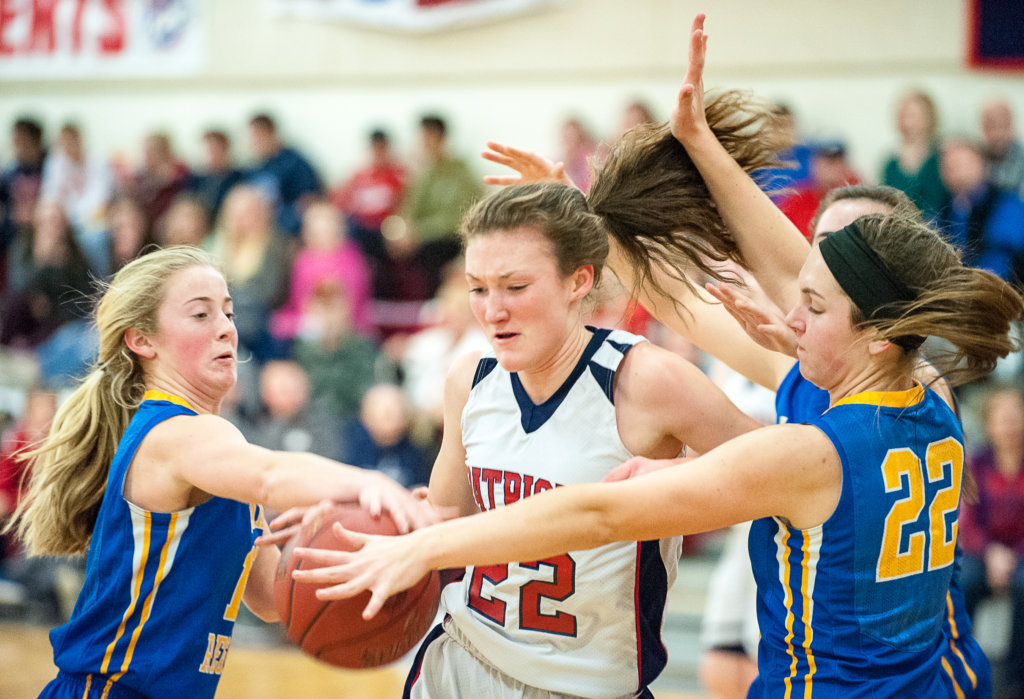 Gray-New Gloucester’s Jordan Grant, center, drives to the basket past Lake Region’s Shauna Hancock, left and Lauren Jakobs, right, during the first half of Tuesday’s game. (Russ Dillingham/Sun Journal) GRAY — The Gray-New Gloucester girls’ basketball team lost control of the game but managed to hold on to win it, beating Lake Region 42-41 on […]