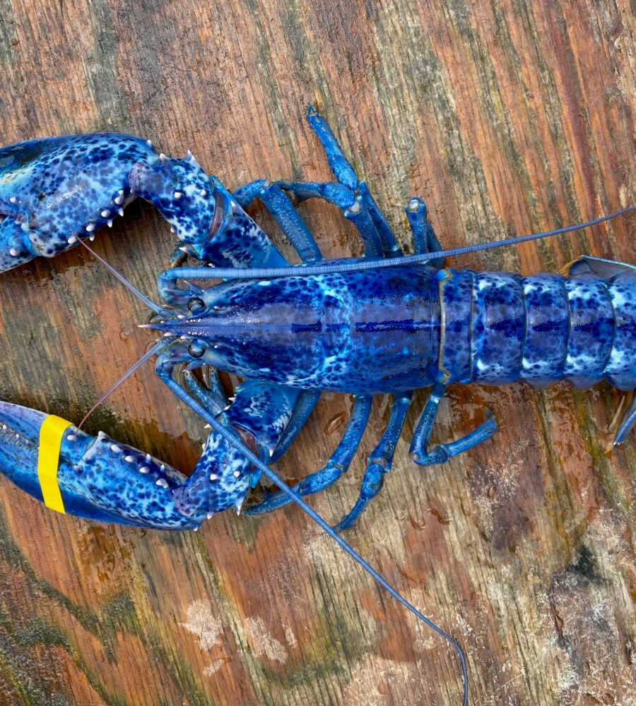 The bright blue lobster caught off Peaks Island will take up residence in a tank at Becky’s Diner.