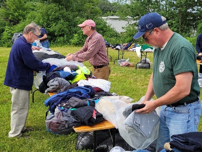 The Bethel Rotarians traveled to Lewiston with more than 200 large bags filled with clean clothing, shoes, bedding, and other essentials to distribute to local families.