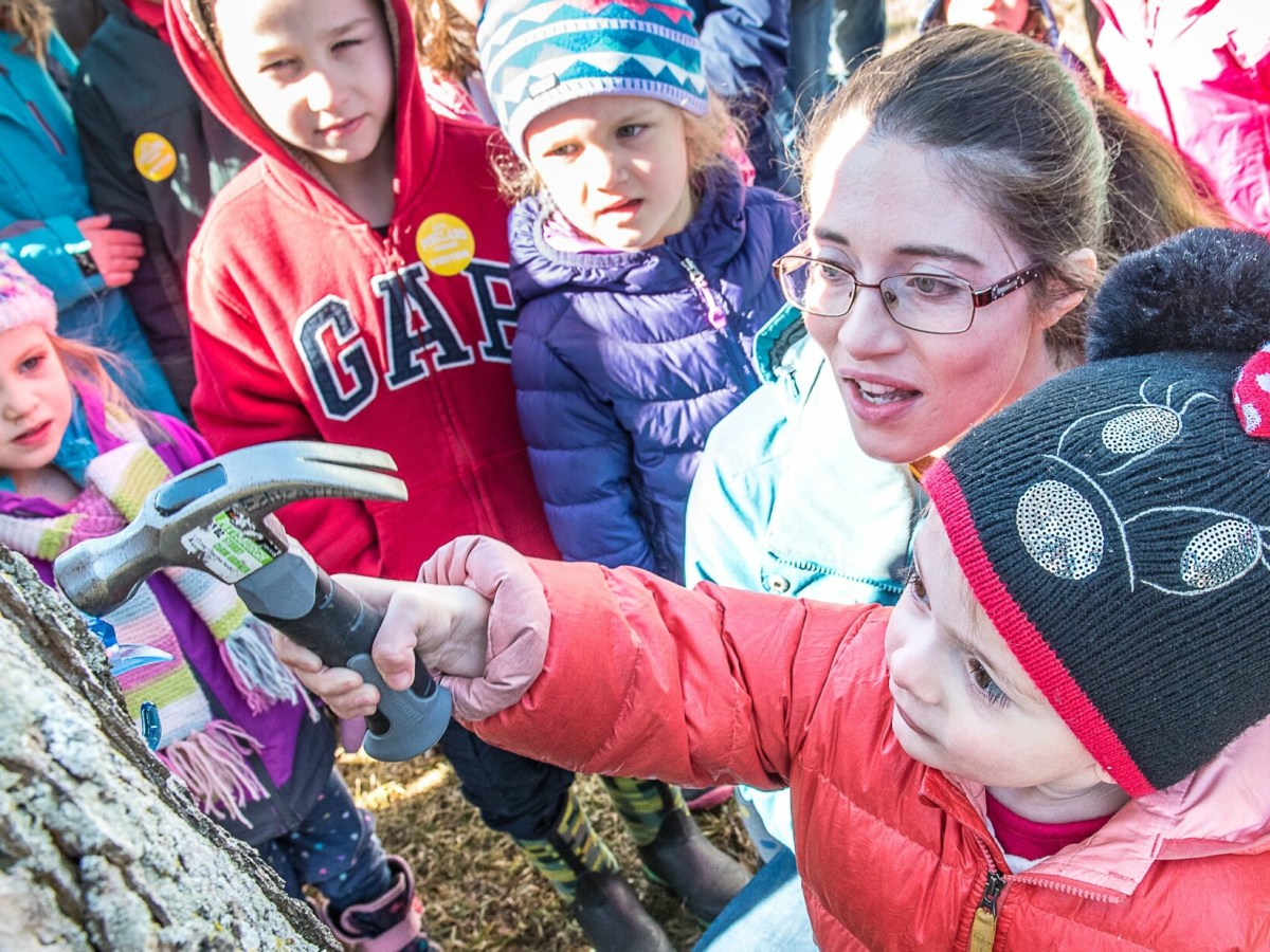 Children learn how maple syrup is made at Pineland Farms in New Gloucester.