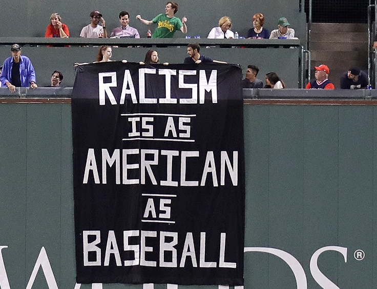 A banner is unfurled over the left field wall during the fourth inning of a baseball game between the Boston Red Sox and Oakland Athletics at Fenway Park in Boston on Wednesday, Sept. 13, 2017. BOSTON — A few fans seated above the Green Monster dropped down a sign denouncing racism during the fourth inning […]