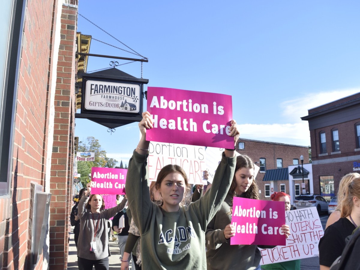 The rally and march, organized by students in the University of Maine at Farmington Democrats, was in response to the June overturning of the landmark Supreme Court case Roe v. Wade, which guaranteed Americans the constitutional right to an abortion.