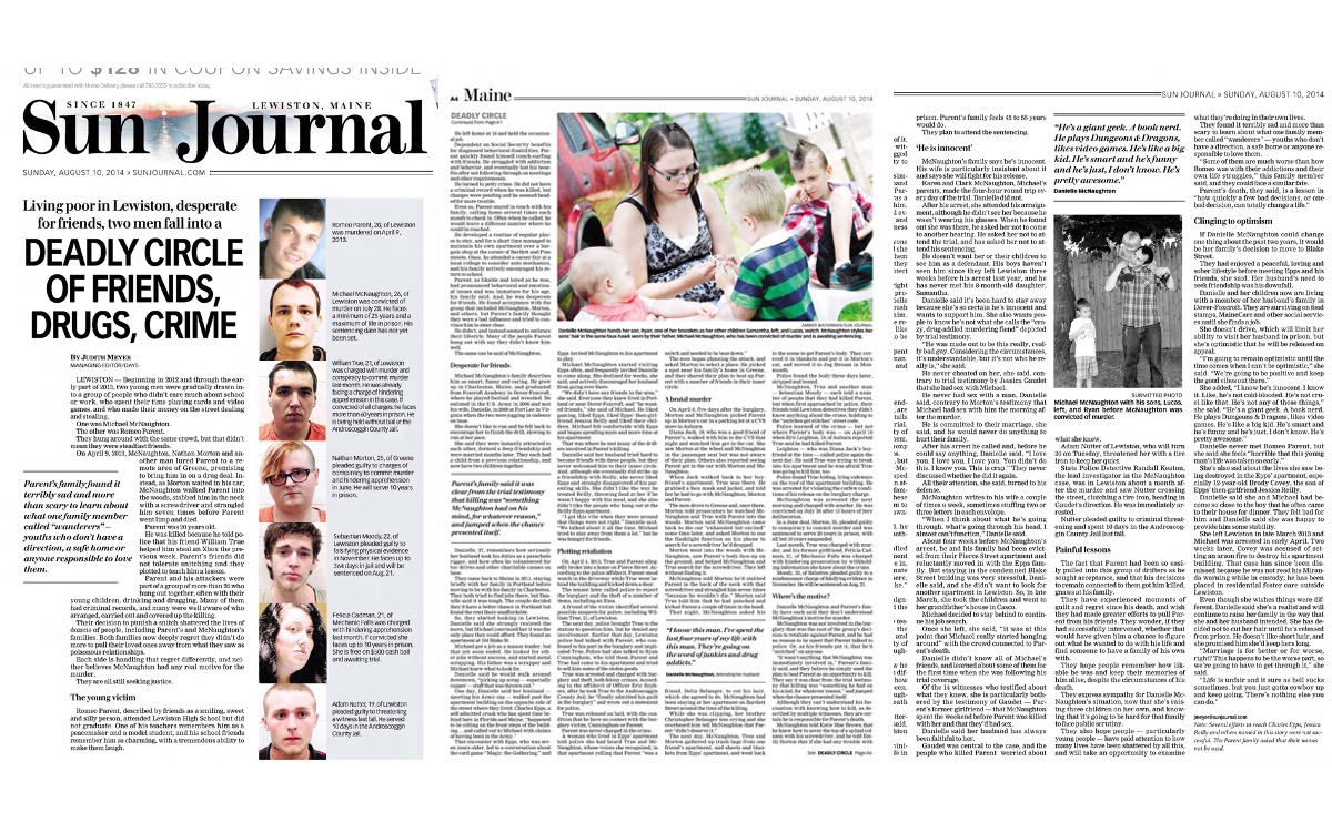 Romeo Parent’s family describe Romeo as smiling, sweet and silly. Michael McNaughton’s family say Michael is smart, funny and caring — despite the fact he was convicted 13 days ago of killing Parent. On Sunday, Sun Journal writer Judith Meyer looks at the lives of the two men. Family members of both men describe how their lives […]