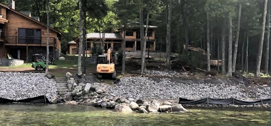 Shoreland restoration work progresses on two lakefront properties on Sebago Lake
