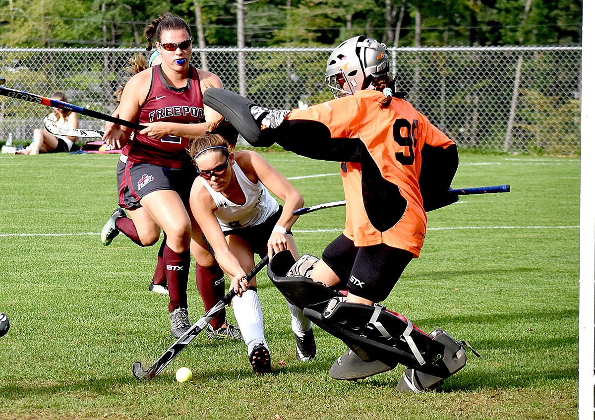 St. Dominic Academy’s Hannah Trottier-Braun, center, maneuvers around Freeport keeper Katelyn Rouleau during their match in Auburn on Wednesday. Rouleau stopped the shot, but Trottier-Braun scored on the rebound. AUBURN — The first 10 minutes of Wednesday’s Western Maine Conference high school field hockey game gave no clue to what was about to come. Freeport, […]