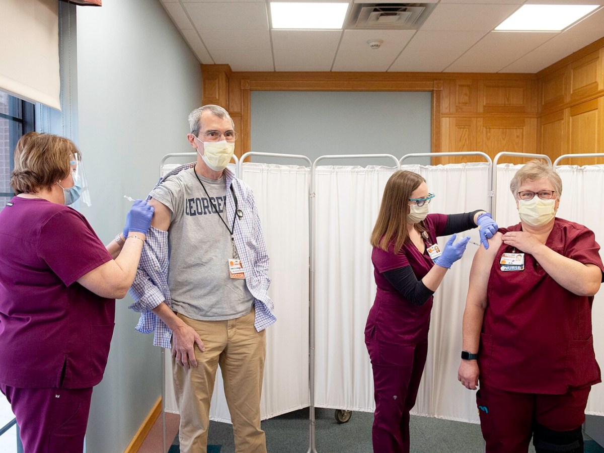 St. Mary’s Regional medical Center in Lewiston received about 400 doses of the Pfizer COVID-19 vaccine, and started giving them to their staff Thursday.