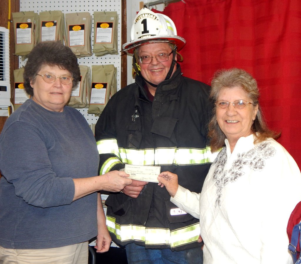 The GFWC/Livermore Falls Women’s Club donated a portion of the proceeds from its election bake sale to the Livermore Fire Department. From left are club President Ellen Young, Livermore Fire Chief Don Constonguay and club Treasurer Christine Fournier.