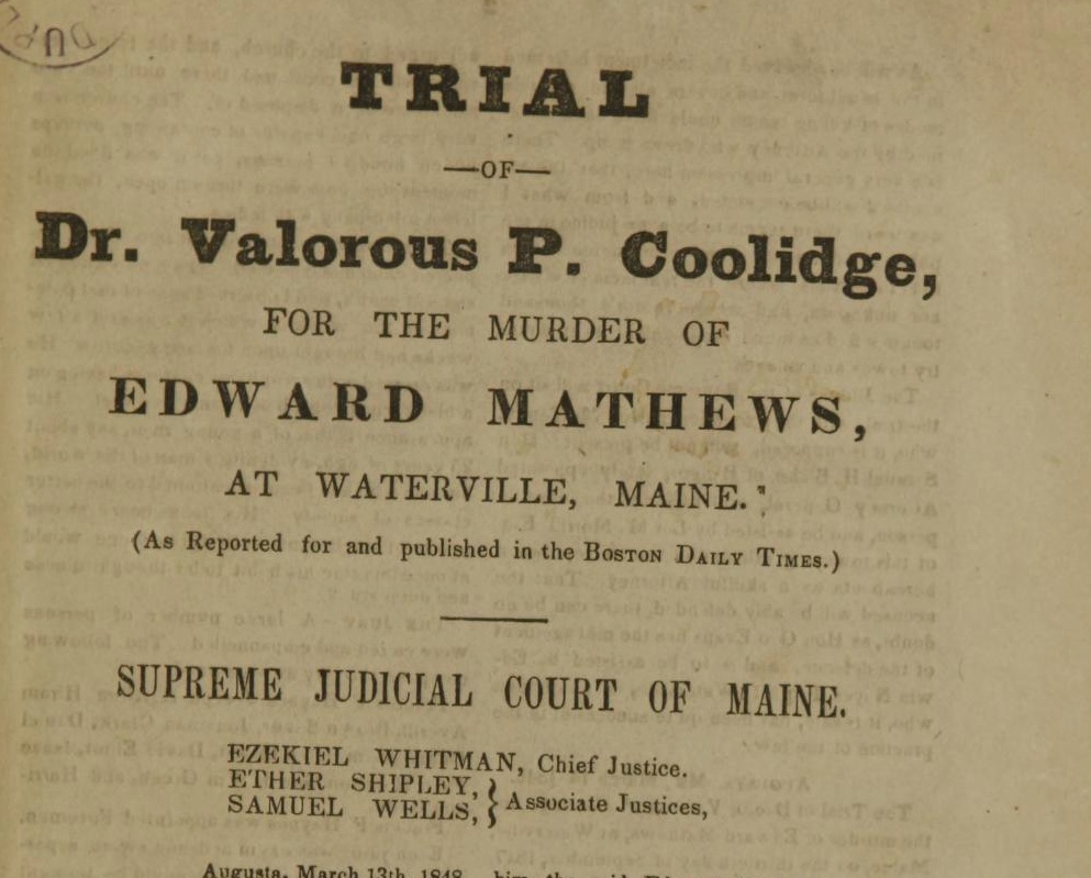 March 22, 1848: Dr. Valorus Perry Coolidge of Waterville is convicted of murder and sentenced to hang for killing Edward Mathews on the night of Sept. 30, 1847, in Waterville and robbing him of about $1,500 that Mathews had just withdrawn from a local bank to lend to the debt-ridden Coolidge. The case became a […]