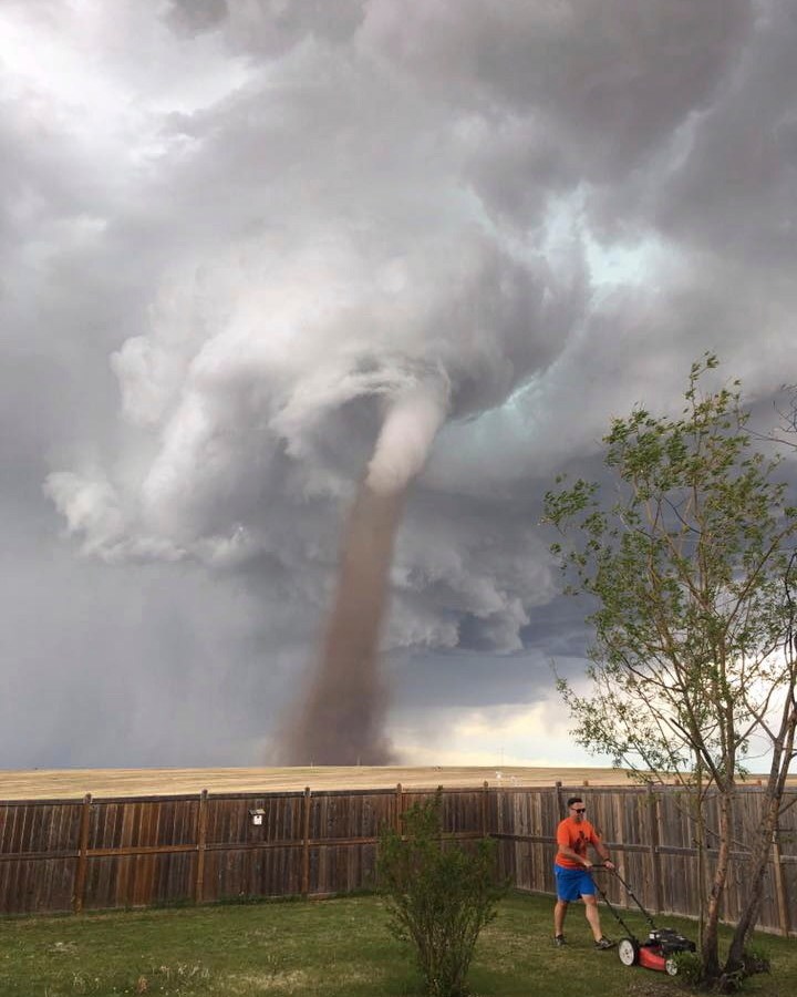 In this Friday, June 2, 2017, photo provided by Cecilia Wessels via The Canadian Press, Theunis Wessels mows his lawn at his home in Three Hills, Alberta, as a tornado swirls in the background. Cecilia Wessels, who took the image of her husband to show the tornado to her parents in South Africa, said that […]