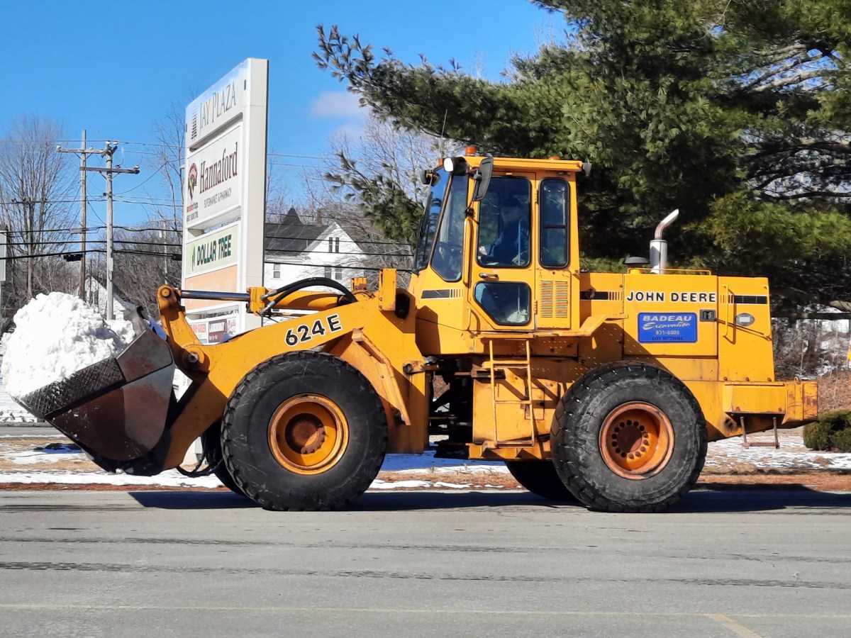 On March 27, a front-end loader was seen at Jay Plaza clearing the last snow piles from the parking lot under bright blue skies.