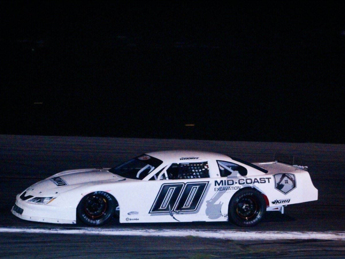 The veteran driver and former track champ adds his name to the long list of winners in the track’s Super Late Model division this season.
